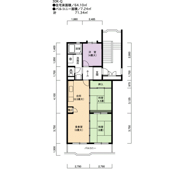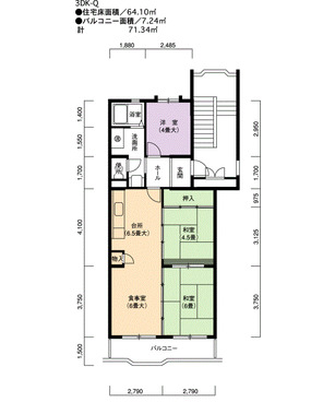 | 間取り | 3DK | 床面積 | 64㎡ |