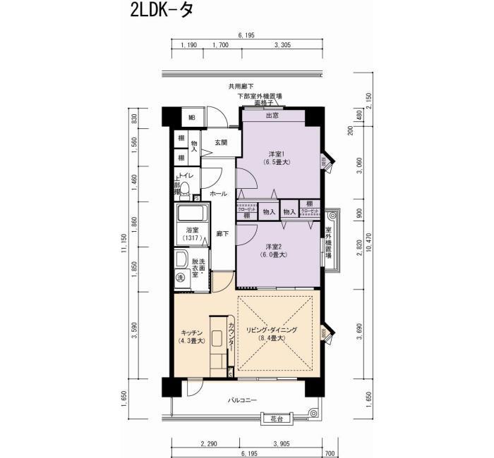 | 間取り | 2LDK | 床面積 | 65㎡ |