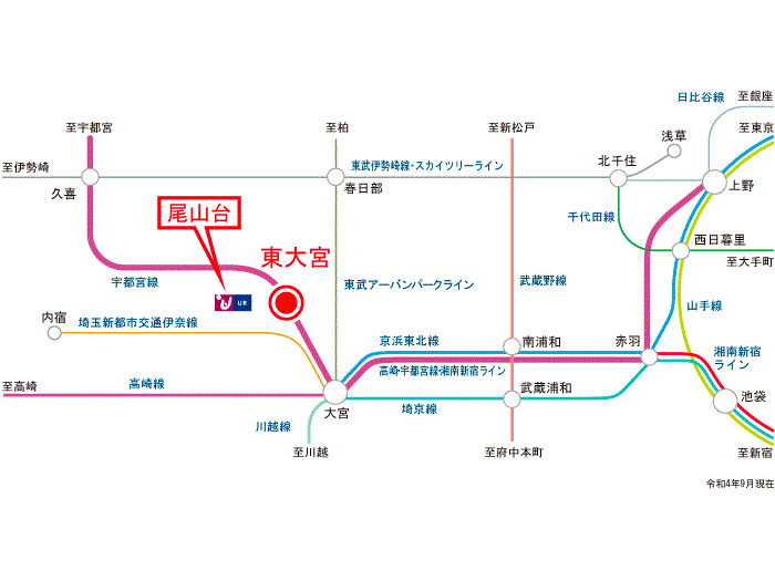 JR湘南新宿ライン 『 東大宮駅 』 駅までバスで2分 バス停『尾山台団地センター 』 徒歩1分 埼玉新都市伊奈線 『 沼南駅 』 駅までバスで8分 バス停『尾山台団地センター 』 徒歩1分 |
