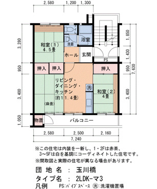 | 間取り | 2LDK | 床面積 | 52㎡ |