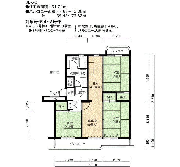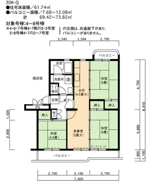 | 間取り | 3DK | 床面積 | 60㎡ |