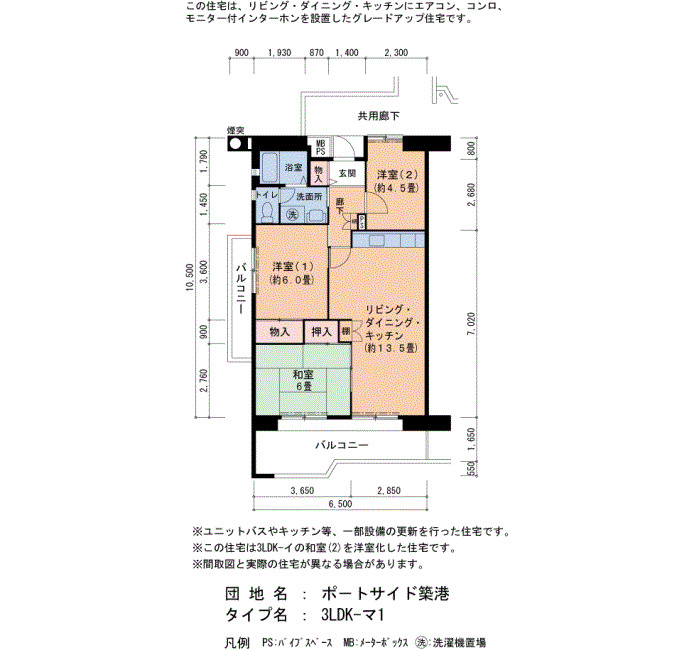 | 間取り | 3LDK | 床面積 | 66㎡ |