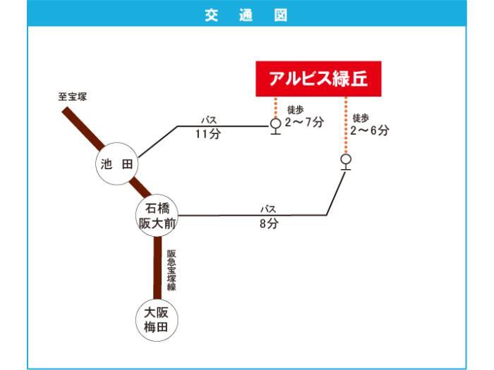 阪急宝塚線 『 池田駅 』 駅までバスで11分 バス停『緑丘小学校前』 徒歩2分 阪急箕面線 『 桜井駅 』 徒歩32分 |