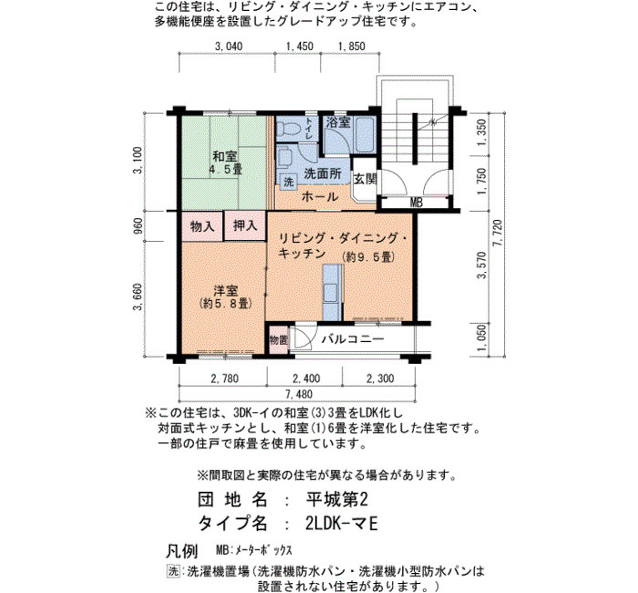 | 間取り | 2LDK | 床面積 | 54㎡ |