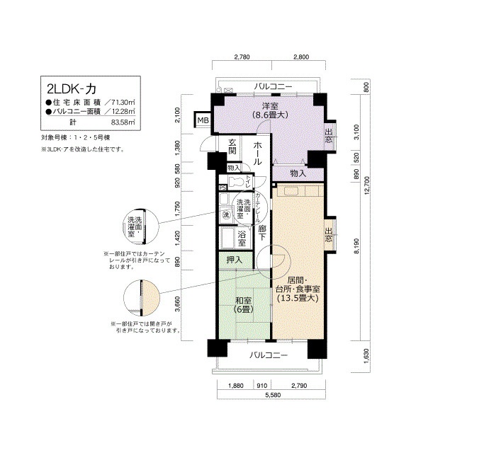 | 間取り | 2LDK | 床面積 | 71㎡ |