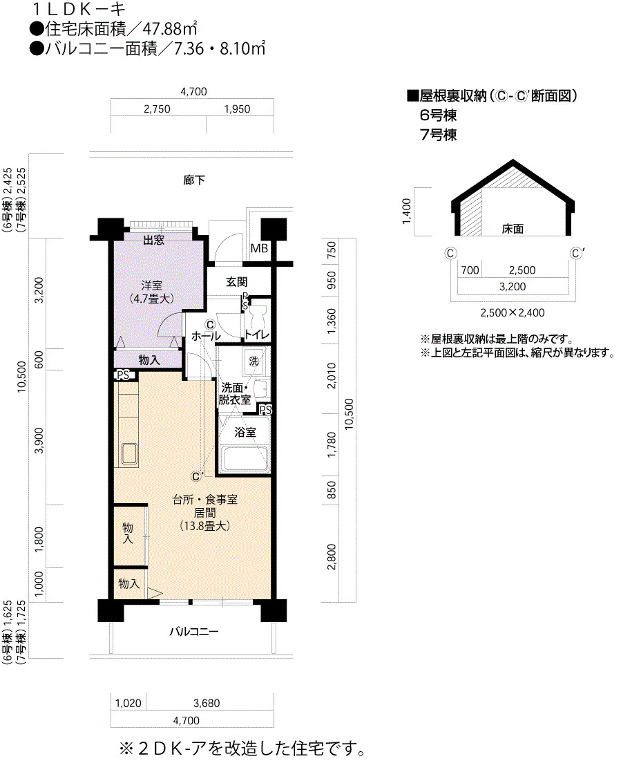 | 間取り | 1LDK | 床面積 | 47㎡ |