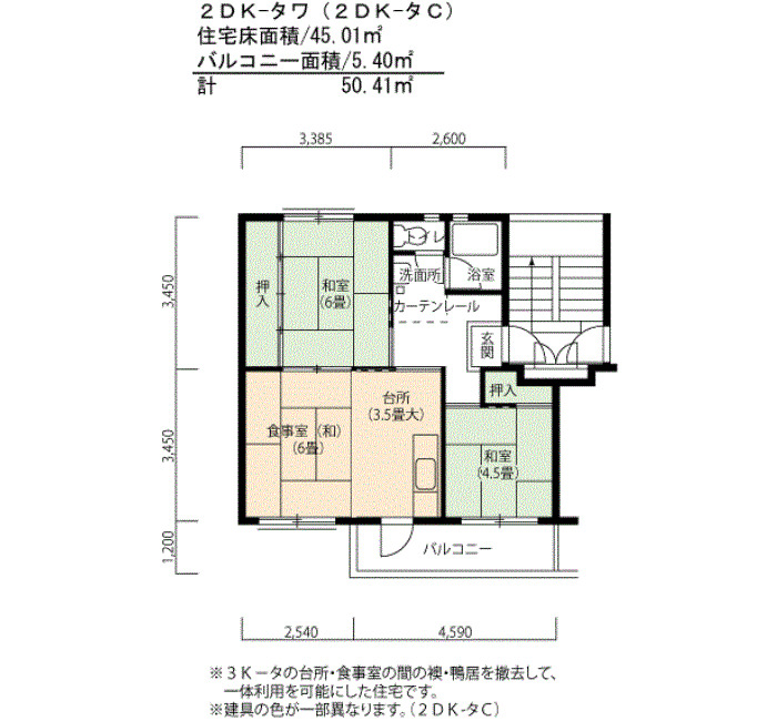 間取り 2DK 床面積 45㎡
