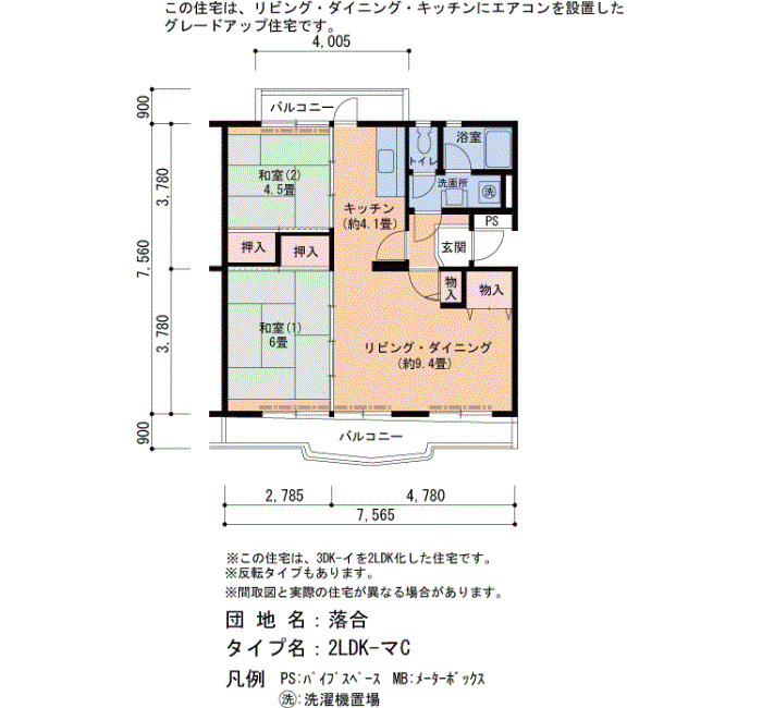 | 間取り | 2LDK | 床面積 | 61㎡ |