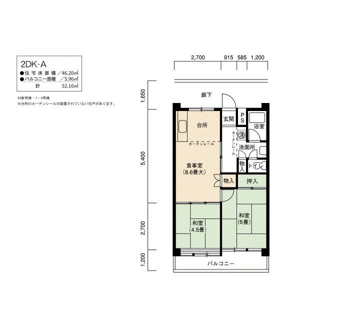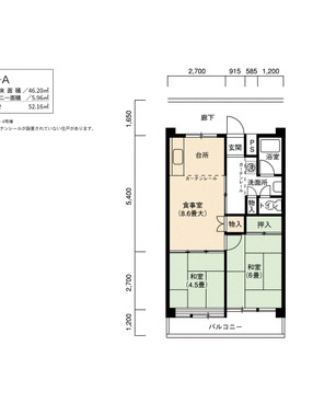 | 間取り | 1LDK | 床面積 | 46㎡ |
