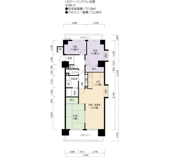間取り | 3LDK | 床面積 | 71㎡ |