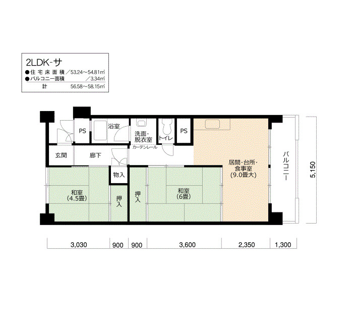 間取り | 2LDK | 床面積 | 53㎡ |