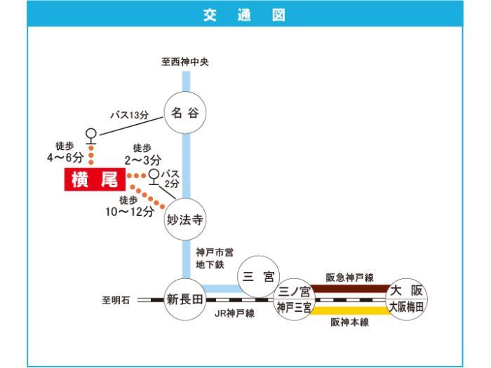 神戸市営西神・山手線 『 妙法寺駅 』 駅までバスで2分 バス停『啓明学院前』 徒歩2分 神戸市営西神・山手線 『 名谷駅 』 駅までバスで13分 バス停『啓明学院前』 徒歩4分 |