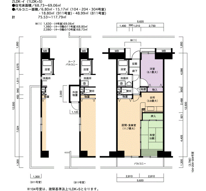 | 間取り | 2LDK | 床面積 | 69㎡ |
