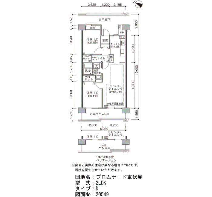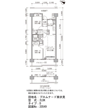 | 間取り | 2LDK | 床面積 | 63㎡ |
