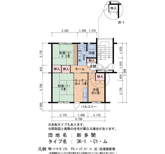 間取り | 3K | 床面積 | 50㎡ |