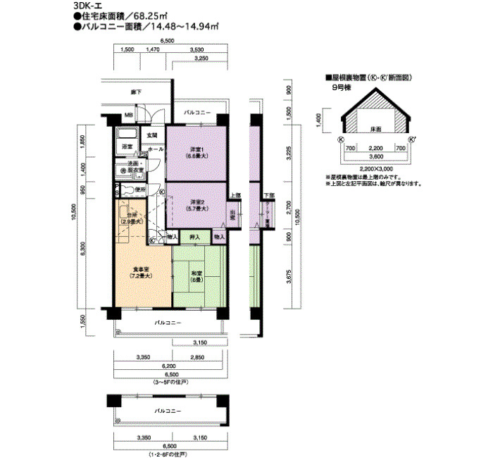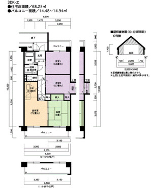 | 間取り | 3DK | 床面積 | 68㎡ |