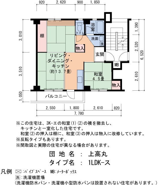 | 間取り | 1LDK | 床面積 | 46㎡ |