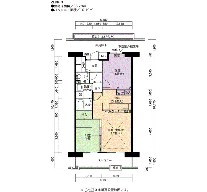 | 間取り | 2LDK | 床面積 | 63㎡ |