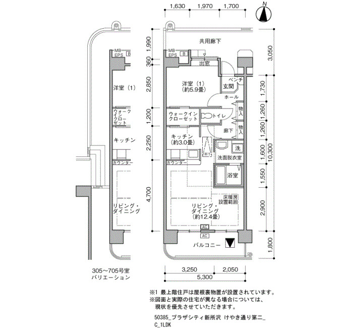 間取り | 1LDK | 床面積 | 57㎡ |