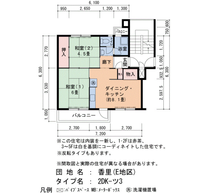 | 間取り | 2DK | 床面積 | 45㎡ |