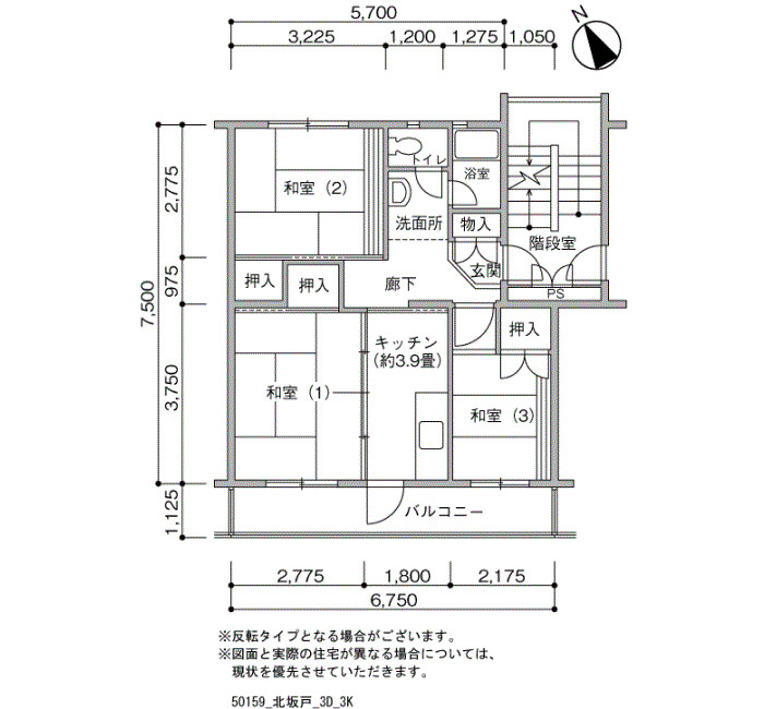 間取り 3K 床面積 50㎡