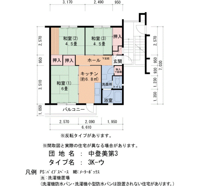 間取り 3K 床面積 48㎡