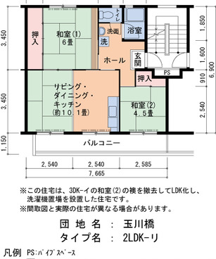 | 間取り | 2LDK | 床面積 | 53㎡ |