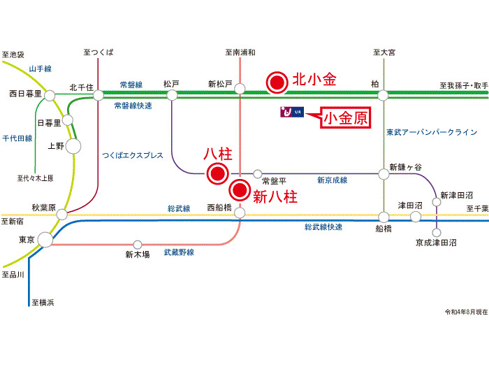 JR武蔵野線 『 新八柱駅 』 駅までバスで15分 バス停『小金原6丁目』 徒歩2分 新京成線 『 常盤平駅 』 駅までバスで15分 バス停『小金原6丁目』 徒歩2分 |