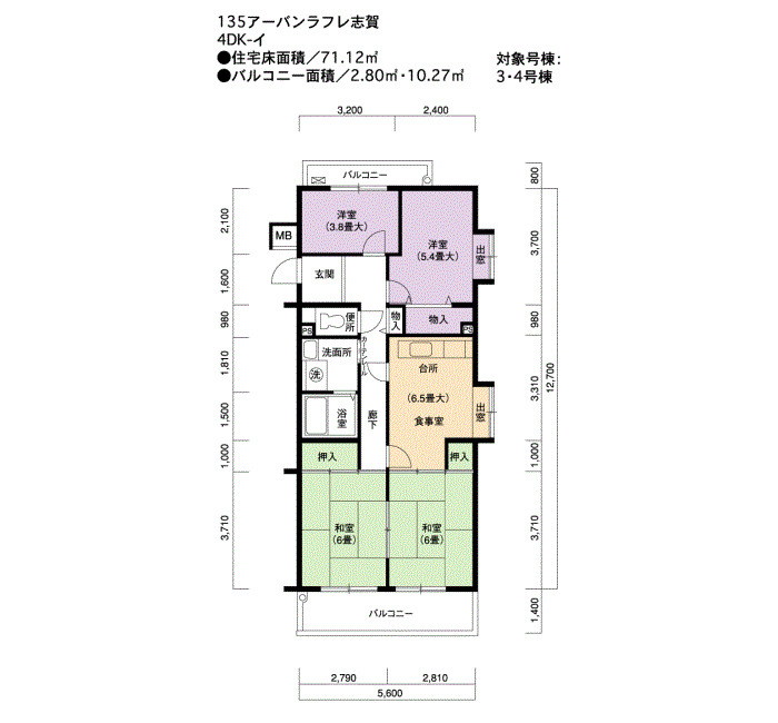 | 間取り | 4DK | 床面積 | 71㎡ |