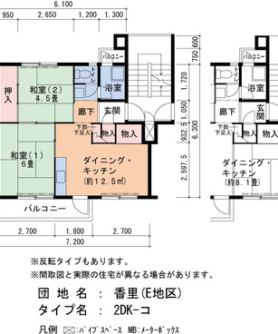 | 間取り | 2DK | 床面積 | 45㎡ |