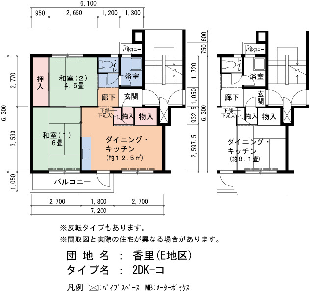 | 間取り | 2DK | 床面積 | 45㎡ |