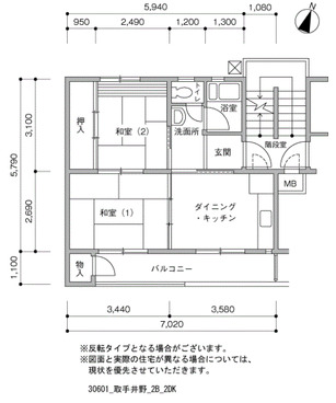 取手駅徒歩14分・取手市|4階 2DK|仮住まい・短期賃貸物件306010