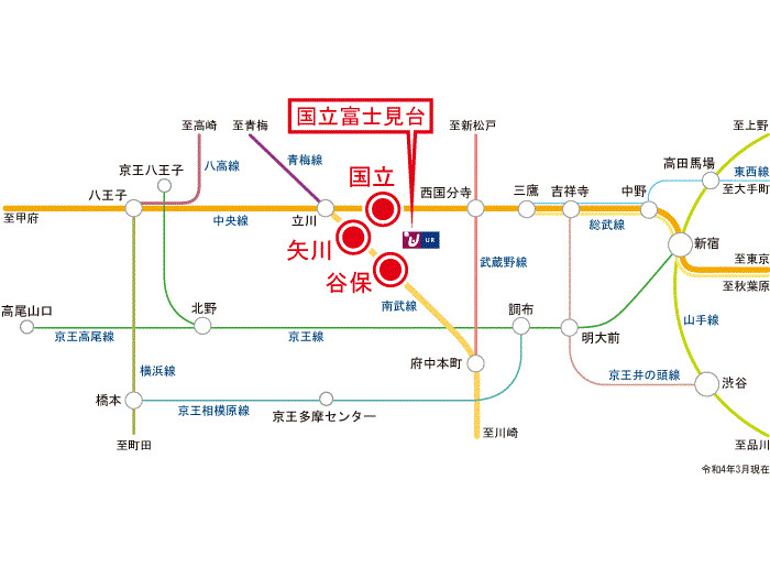 JR南武線 『 谷保駅 』 徒歩10分 JR中央線 『 国立駅 』 徒歩23分 JR中央線 『 国立駅 』 駅までバスで8分 バス停『富士見第一団地』 徒歩2分 JR南武線 『 矢川駅 』 駅までバスで5分 バス停『富士見第一団地』 徒歩1分 |