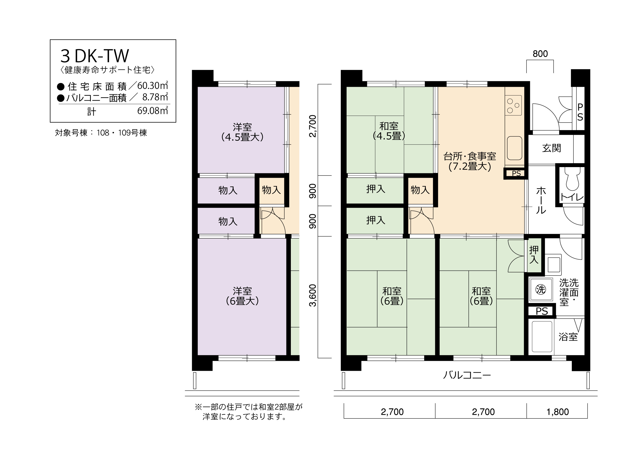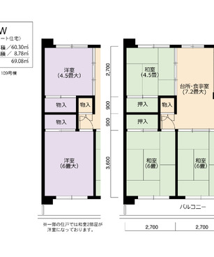 | 間取り | 3DK | 床面積 | 60㎡ |