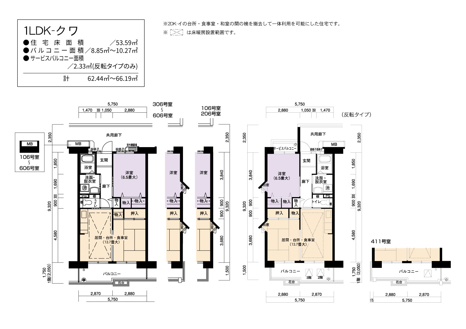 | 間取り | 1LDK | 床面積 | 53㎡ |