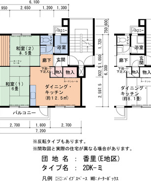 | 間取り | 2DK | 床面積 | 45㎡ |