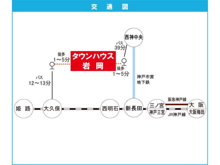神戸市営西神・山手線 『 西神中央駅 』 駅までバスで39分 バス停『岩岡中学校前』 徒歩1分 |