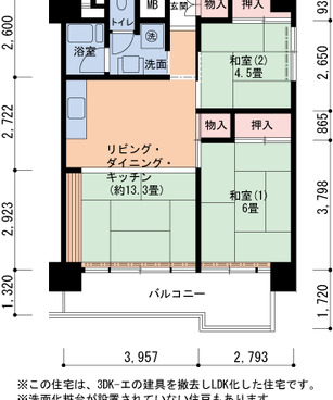 | 間取り | 2LDK | 床面積 | 60㎡ |