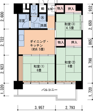 | 間取り | 3DK | 床面積 | 60㎡ |