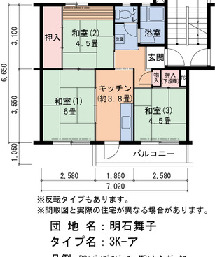 | 間取り | 3K | 床面積 | 45㎡ |
