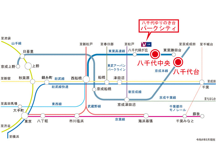 京成本線 『 八千代台駅 』 駅までバスで23分 バス停『ゆりのき台三丁目』 徒歩3分 京成本線 『 京成大和田駅 』 徒歩31分 |