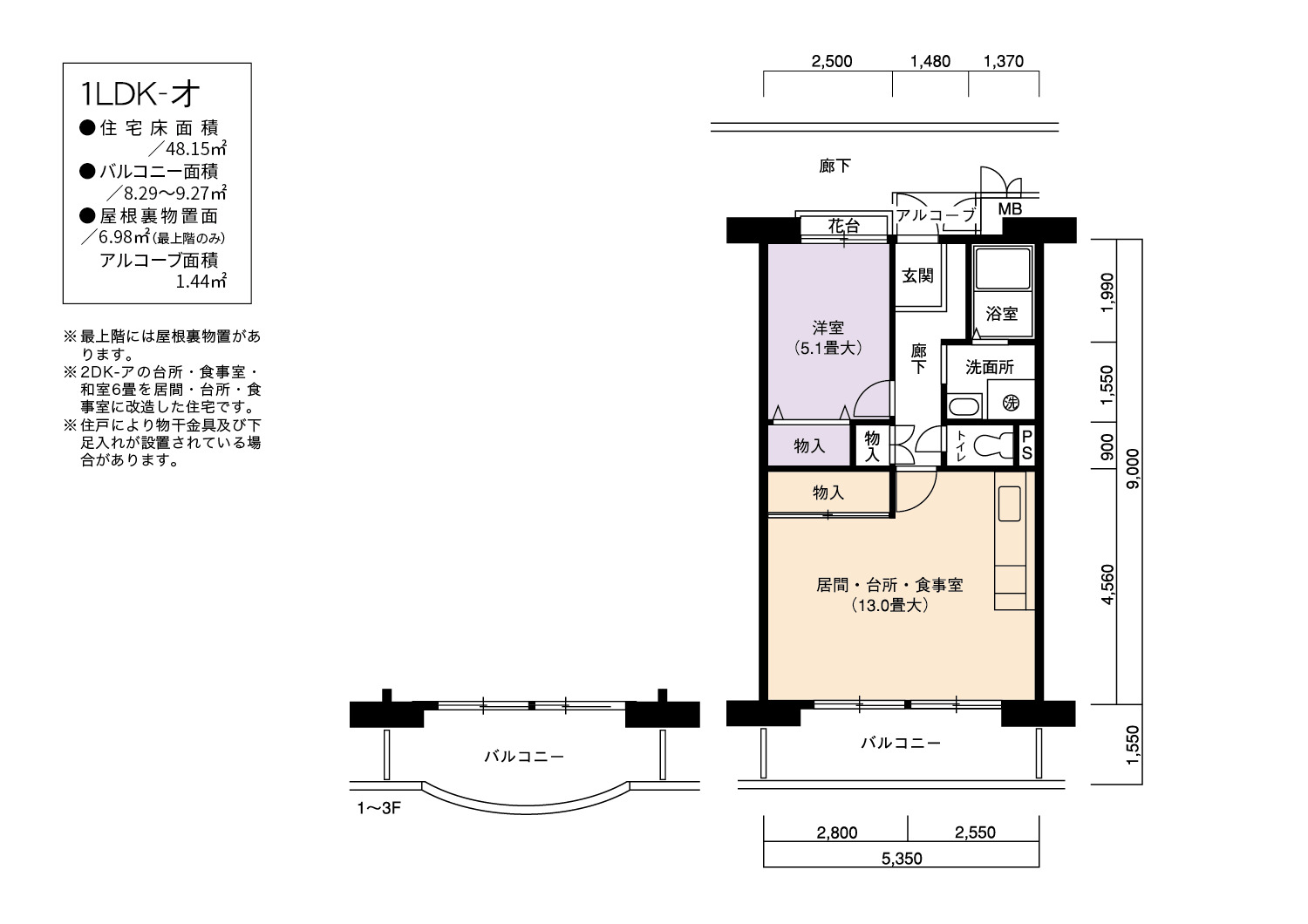 | 間取り | 1LDK | 床面積 | 48㎡ |