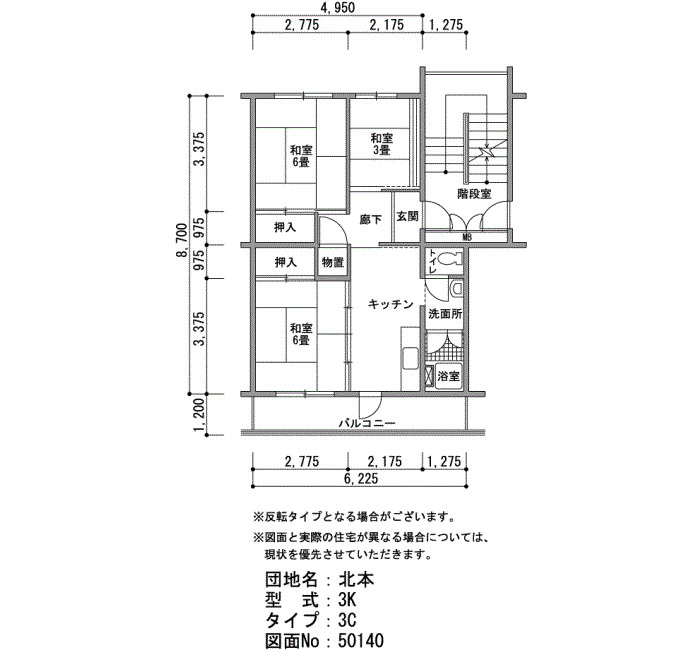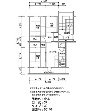 間取り 3K 床面積 52㎡