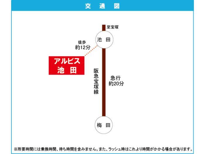 阪急宝塚線 『 石橋阪大前駅 』 駅までバスで7分 バス停『八王寺一丁目』 徒歩2分 阪急宝塚線 『 川西能勢口駅 』 徒歩32分 |