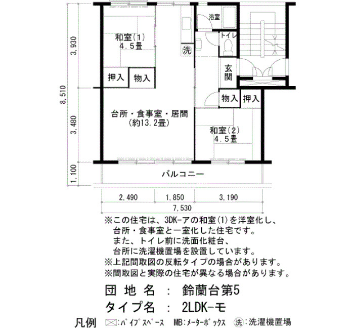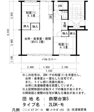 | 間取り | 2LDK | 床面積 | 55㎡ |