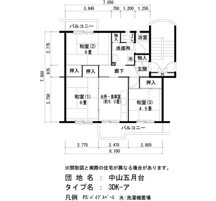 | 間取り | 3DK | 床面積 | 61㎡ |