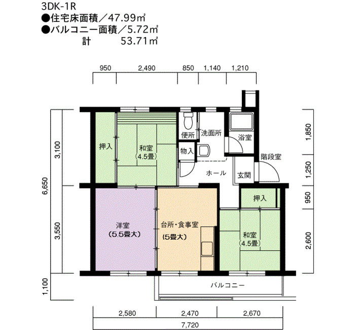 間取り 3DK 床面積 50㎡
