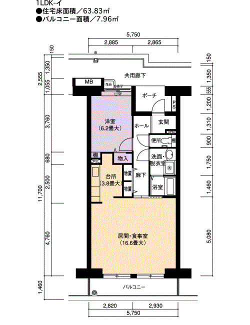 | 間取り | 1LDK | 床面積 | 63㎡ |