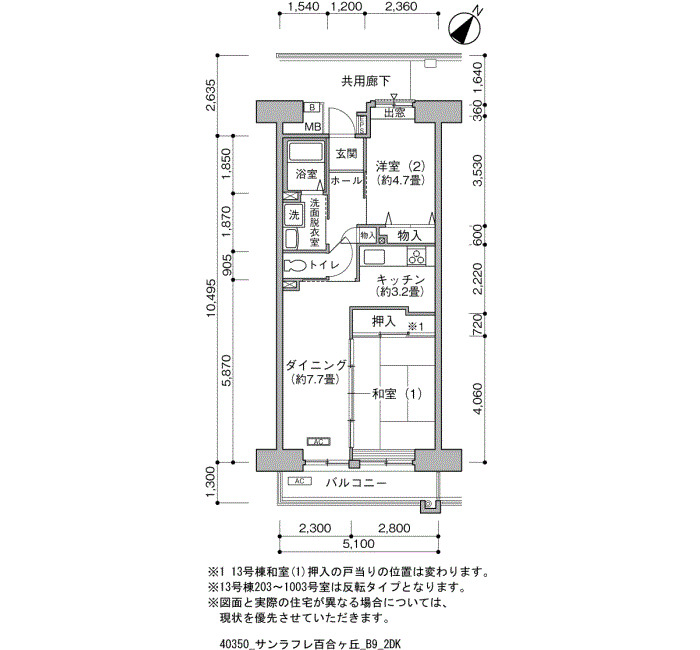 間取り | 2DK | 床面積 | 54㎡ |