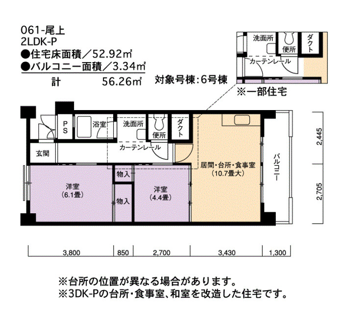 | 間取り | 2LDK | 床面積 | 52㎡ |